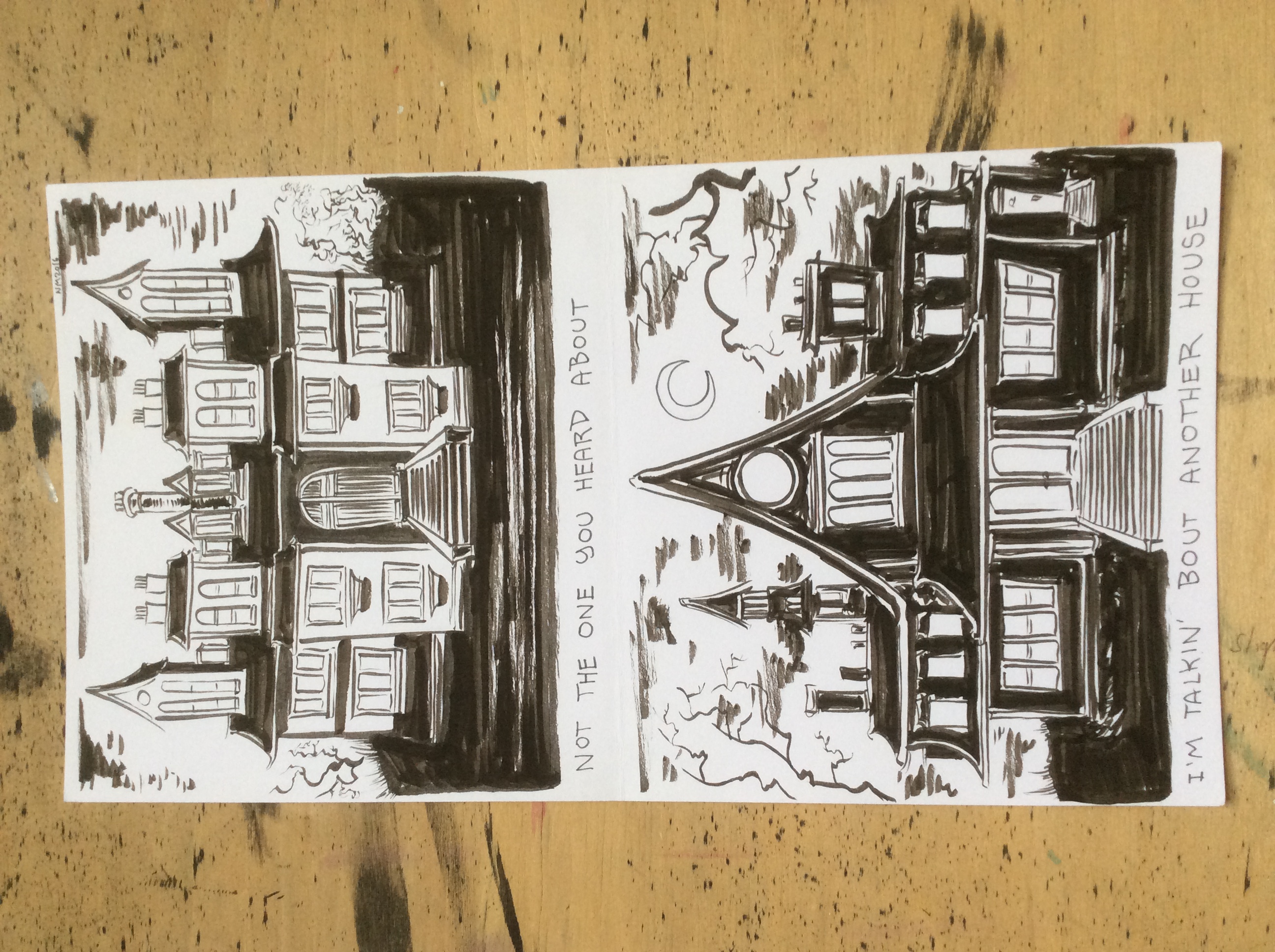 Two pages of 11 x 6 in Noodlers Ink and Copic Multiliner Pen On Bristol Board. Lyrics from the Silver Jews song New Orleans