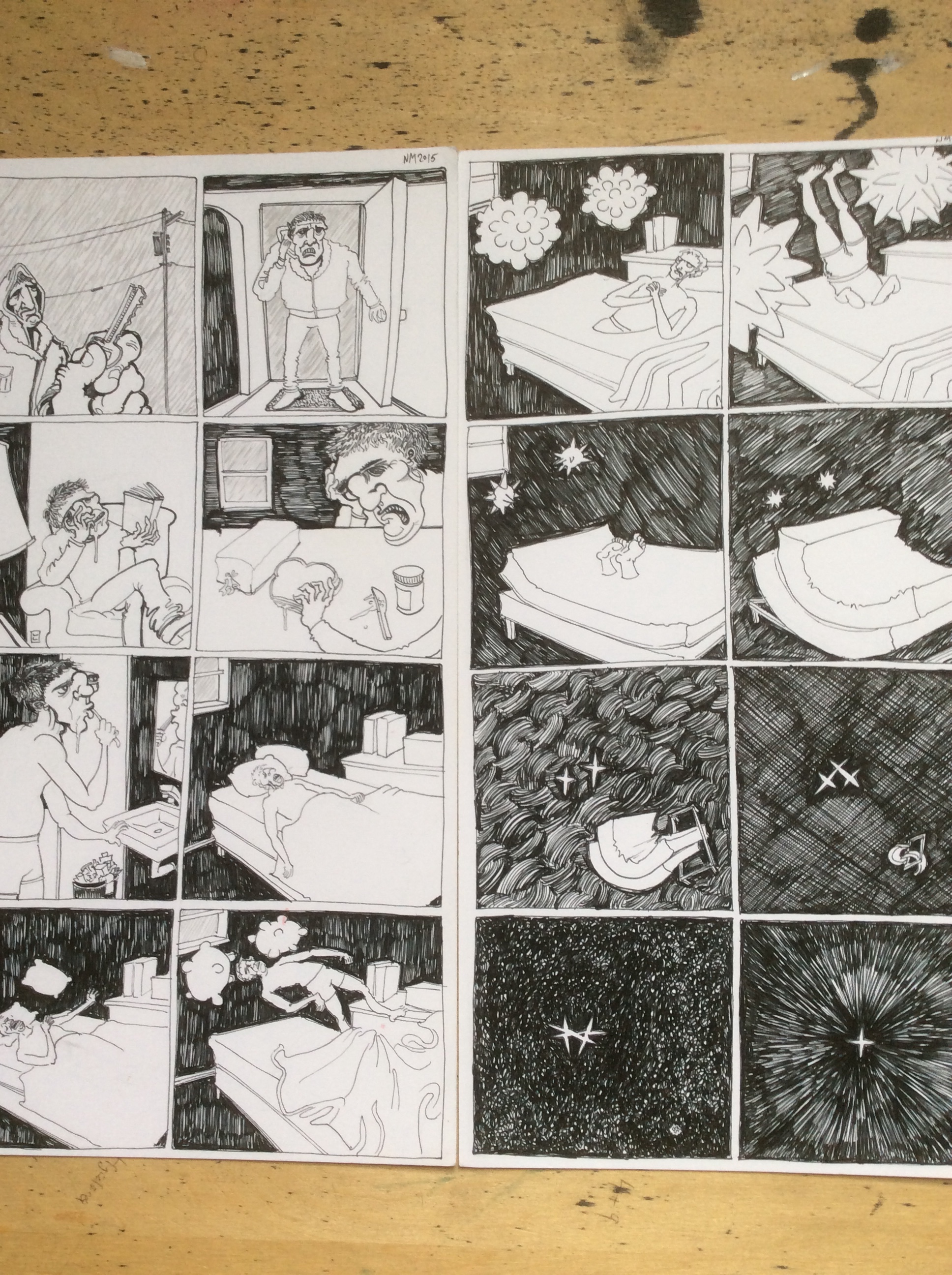 Two pages of 11 x 5.5 in Copic Multiliner Pen On Bristol Board