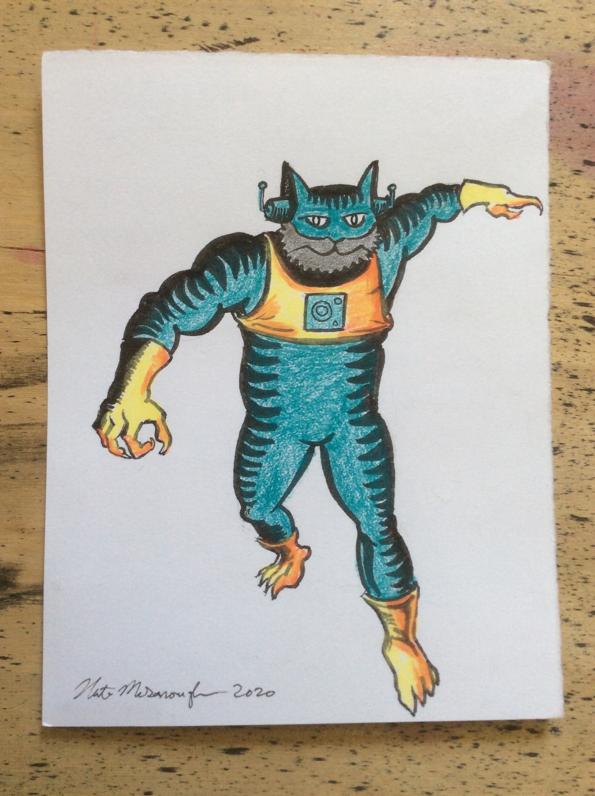 5.5 x 4.25 inch original art, pen and ink, colored pencil